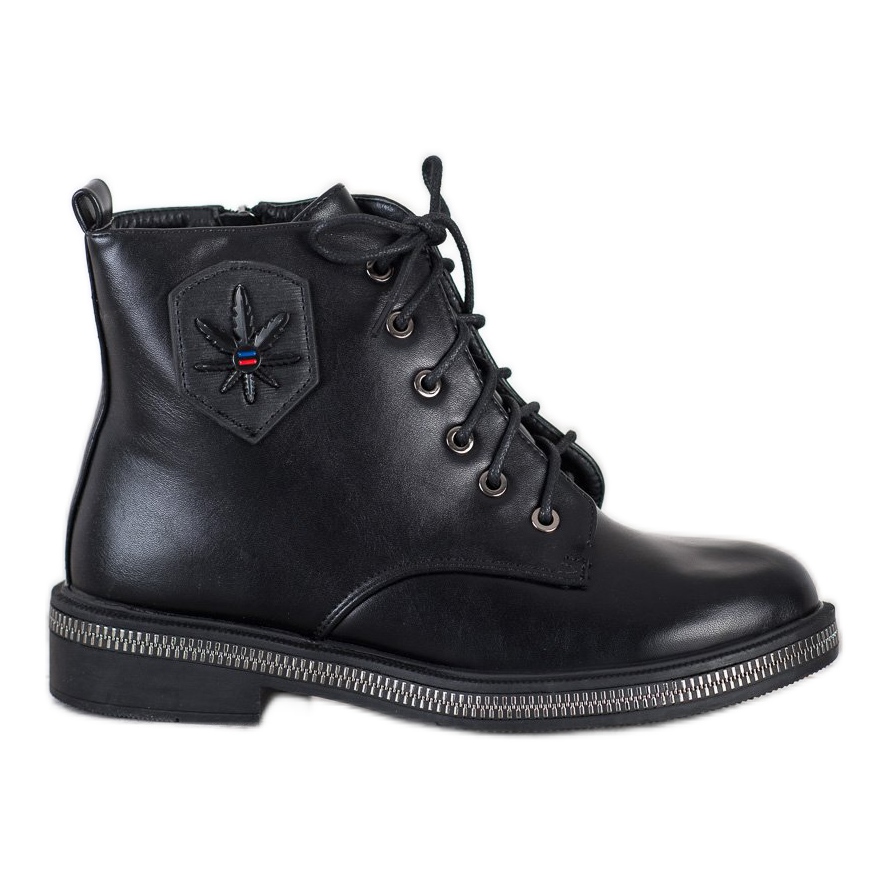Groto Gogo Black Workers kännetecknas av en rund tå och en övre bredd på 22 cm, vilket säkerställer rätt passform. Snören och dragkedja gör det enkelt att ta på och av skorna. En slät sula av syntetiskt material ger dem ett modernt utseende.