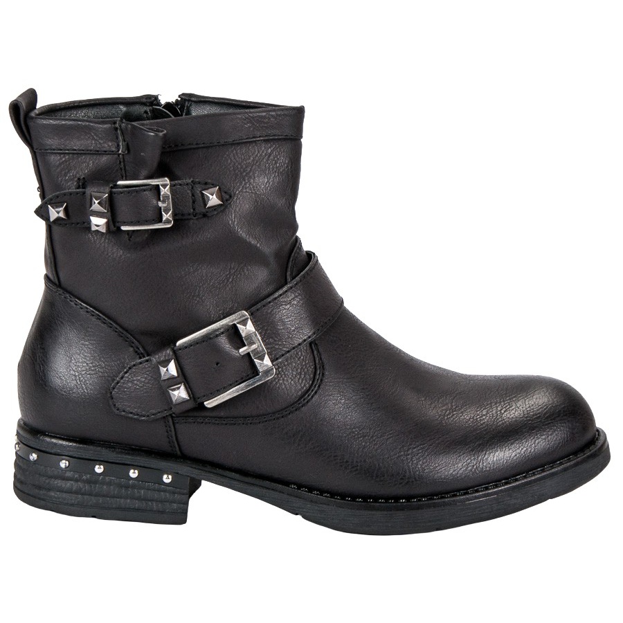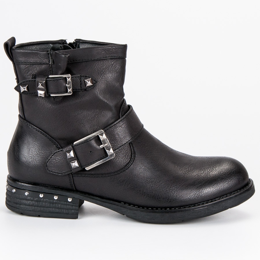 Dekorativa spännen och iögonfallande dubbar drar till sig uppmärksamhet, vilket ger skorna en unik karaktär. Den 3,5 cm höga hälen och sulan med slitbana ger inte bara stil, utan säkerställer också komfort vid vardagsbruk. Tack vare deras högkvalitativa utförande kan du vara säker på att de kommer att fungera under många säsonger.