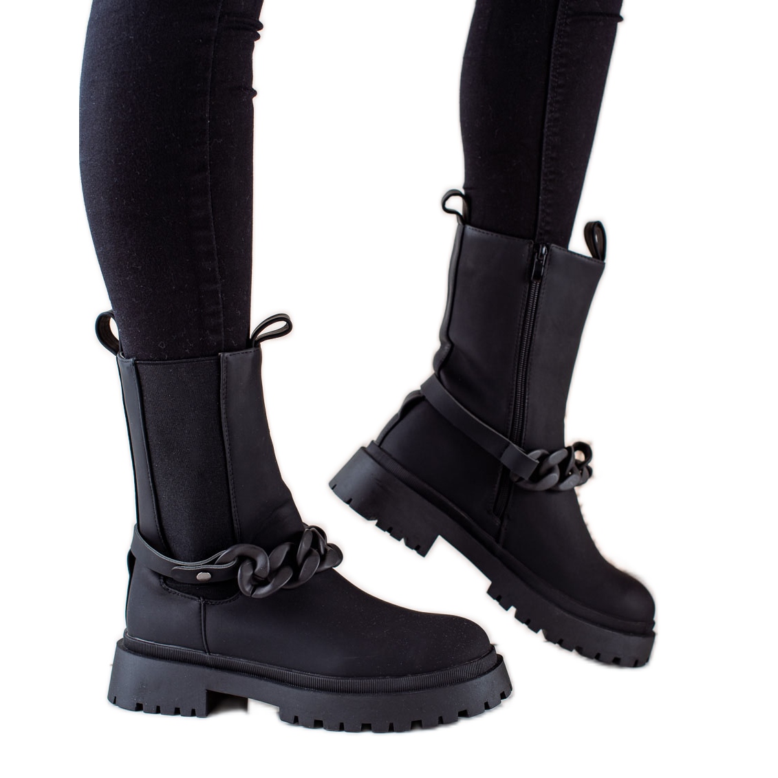 Upptäck mode och komfort i en av de senaste modellerna från TRENDI - svarta arbetarstövlar med ett dekorativt bälte, som passar perfekt till trenderna för höst/vintersäsongen. Dessa eleganta damstövlar med en uppbyggd, mjuk klack ger inte bara komfort utan också utmärkt stabilitet tack vare den platta hälen.