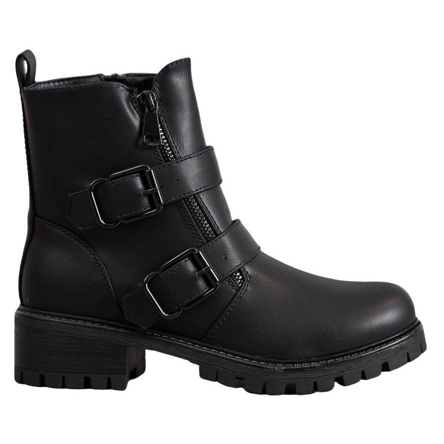 Särskild uppmärksamhet dras till de dekorativa spännena som ger skorna en karakteristisk rockstil. Tack vare en inbyggd, förstyvad häl och en bekväm innersula gjord av ett annat material är dessa arbetare inte bara estetiska utan också funktionella. De har en 14 cm ovandel och stängning med spänne och dragkedja, vilket gör dem lätta att ta på och justera.