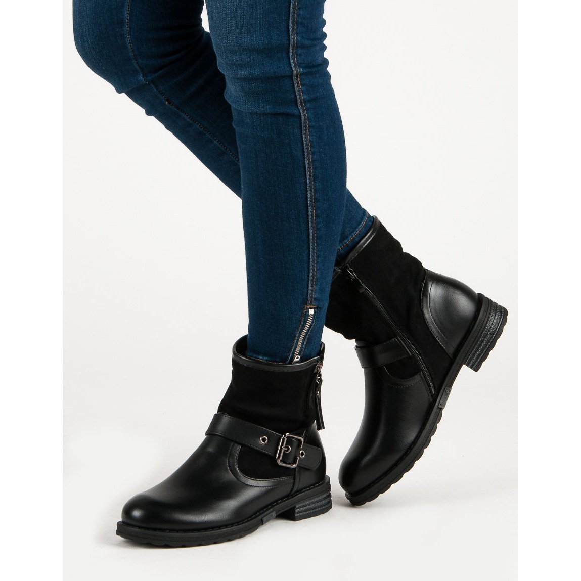 Den svarta färgen på arbetarshortsen gör att de matchar många outfits, både avslappnade och rockiga. Ytterligare dekorativa element, som ett spänne och en attraktiv dragkedja, ger skorna karaktär och gör dem till en fashionabel accent till alla stylingar. Höga ovandelar, som når över ankeln, ger inte bara ett snyggt utseende, utan också extra stöd och komfort.