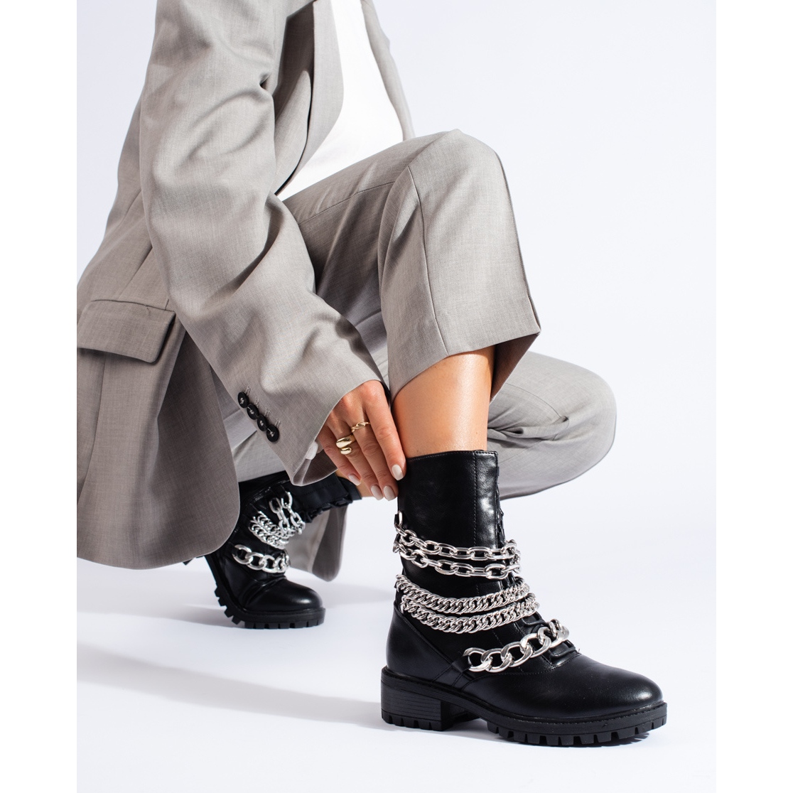 SHELOVET Svarta arbetarstövlar för kvinnor med en Shelovet-kedja