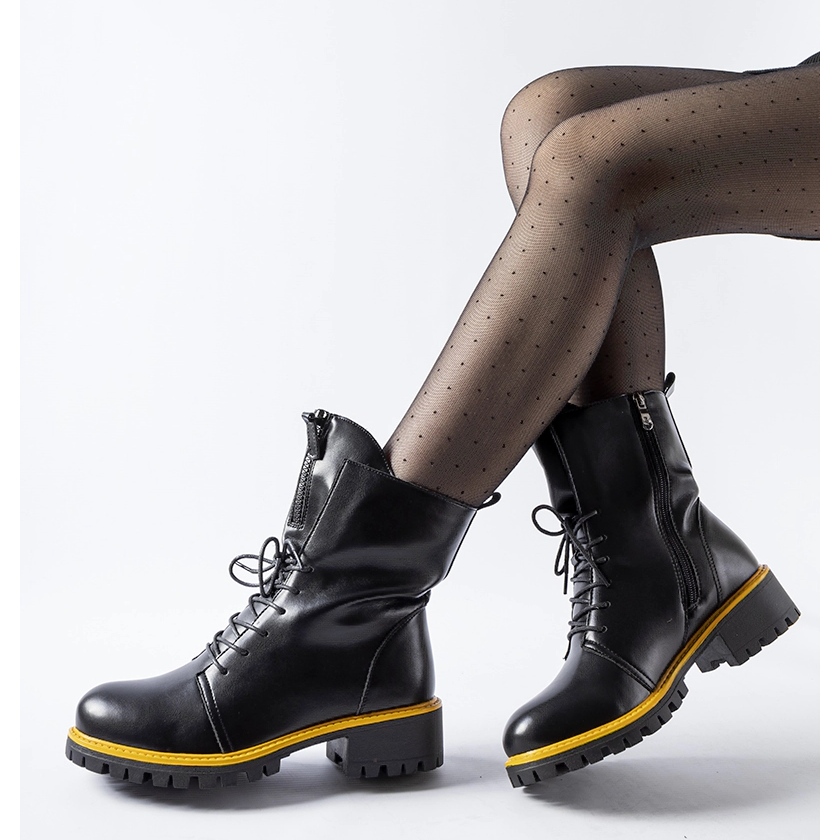 Detaljer: Svarta arbetarstövlar med gul Elisabetta-dekor