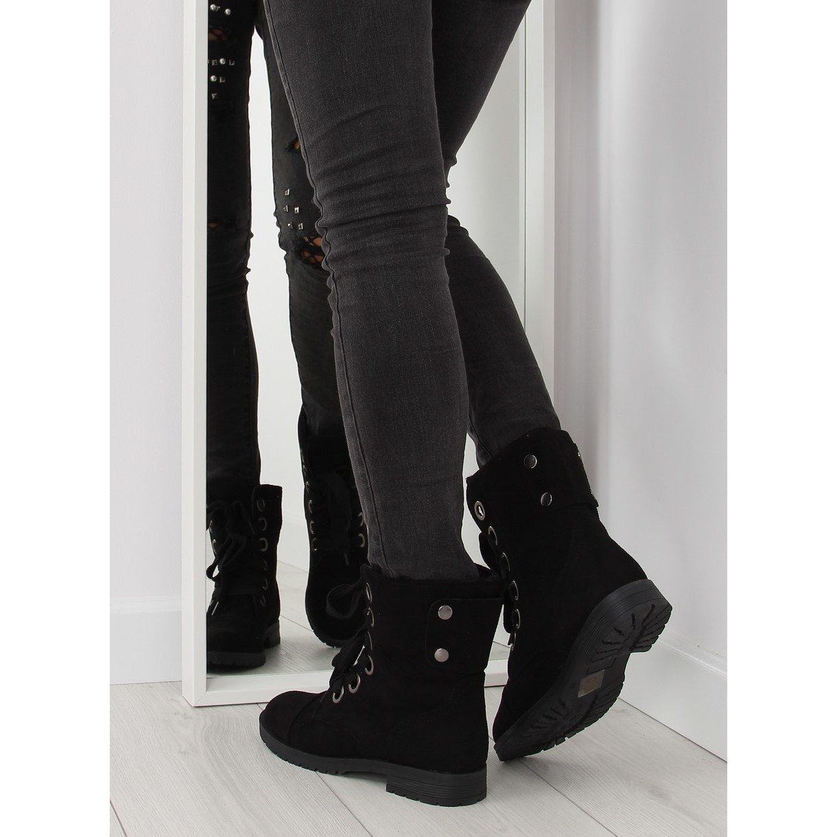 Detaljer: Svarta arbetsstövlar med snörning 8901 Svart