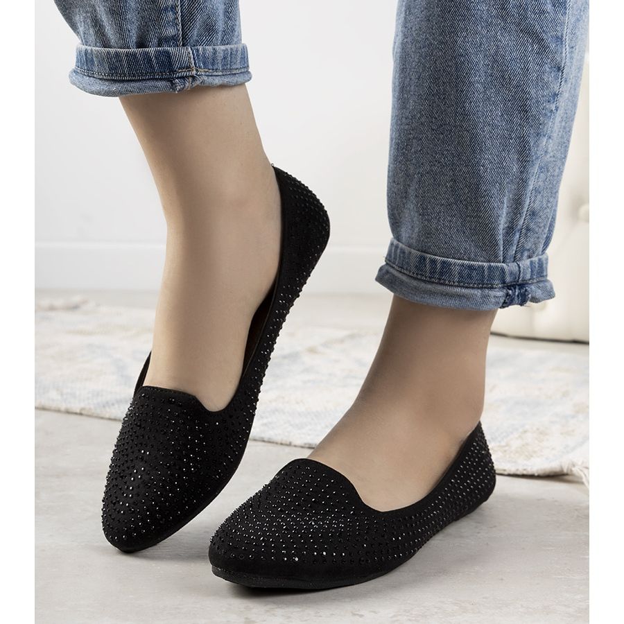 Detaljer: Svarta ballerinor prydda med Harriette cubic zirconia