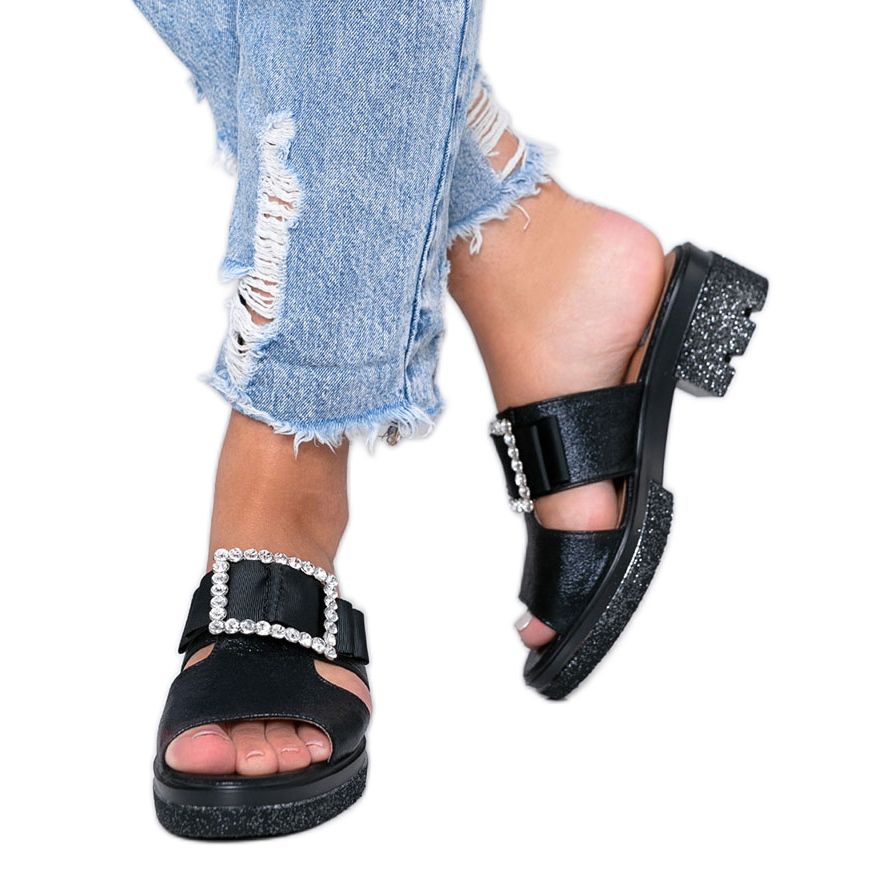 Information: Svarta blanka tofflor med Lizzy -spänne