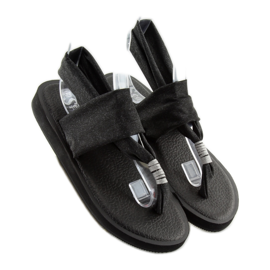 Dessa är svarta flip-flop sandaler DD81P - det perfekta valet för sommardagar! Dessa otroligt bekväma flip-flops kombinerar lätthet och stil, vilket säkerställer maximal bärkomfort. Tillverkade av högkvalitativt bomullstyg, de är inte bara behagliga att ta på, utan också hållbara. Det dolda elastiska bandet ger dem ett bra grepp om foten, så att du kan röra dig fritt hela dagen.
