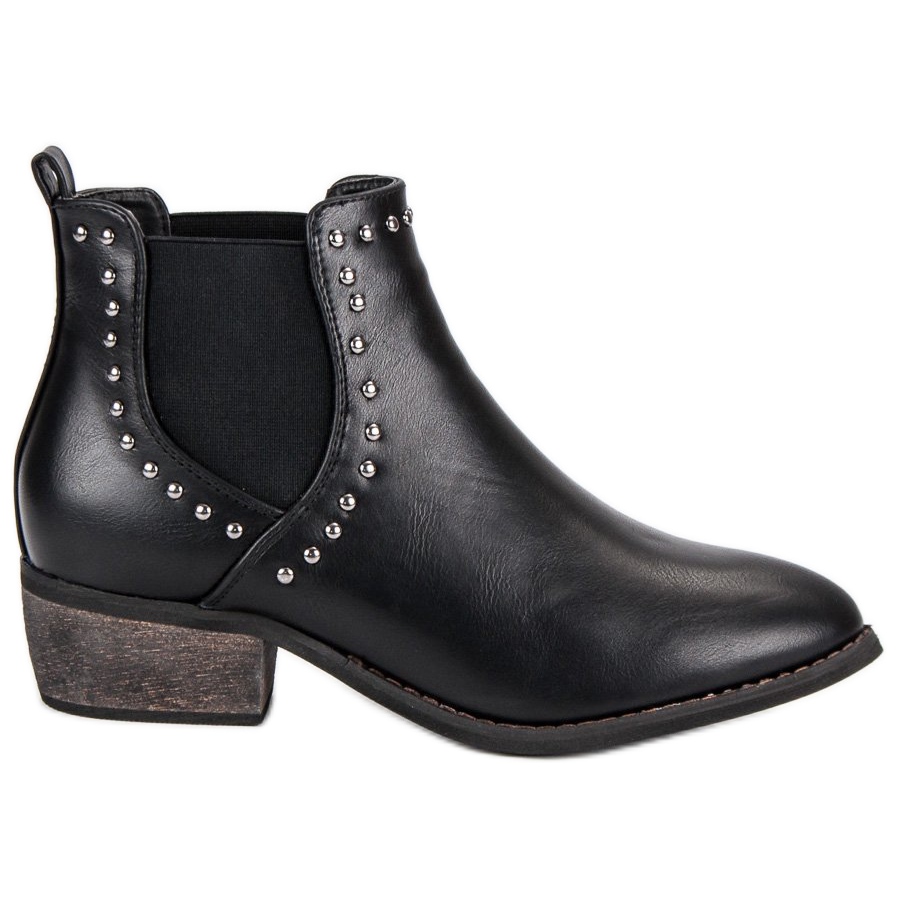 Black Sweet Shoes Chelsea-stövlar är ett perfekt val för varje kvinna som vill lägga till lite karaktär till sin avslappnade outfit. Dessa iögonfallande skor kännetecknas av sin unika design som säkerligen kommer att locka uppmärksamhet. Dekorationer i form av dubbar ger dem en unik, moderiktig accent, vilket gör dem perfekta för både vardagsbruk och helgutflykter.