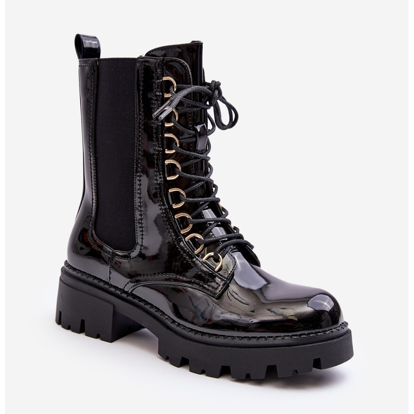 Snygg och universell - så här kan du kort beskriva Black Patent Worker Boots från Charmea. Detta är ett unikt förslag för varje kvinna som vill kombinera komfort, funktionalitet och originell stil. Perfekt för höstens och vinterns kallare dagar, dessa stövlar kombinerar effektivt praktiska lösningar med moderiktig design.
