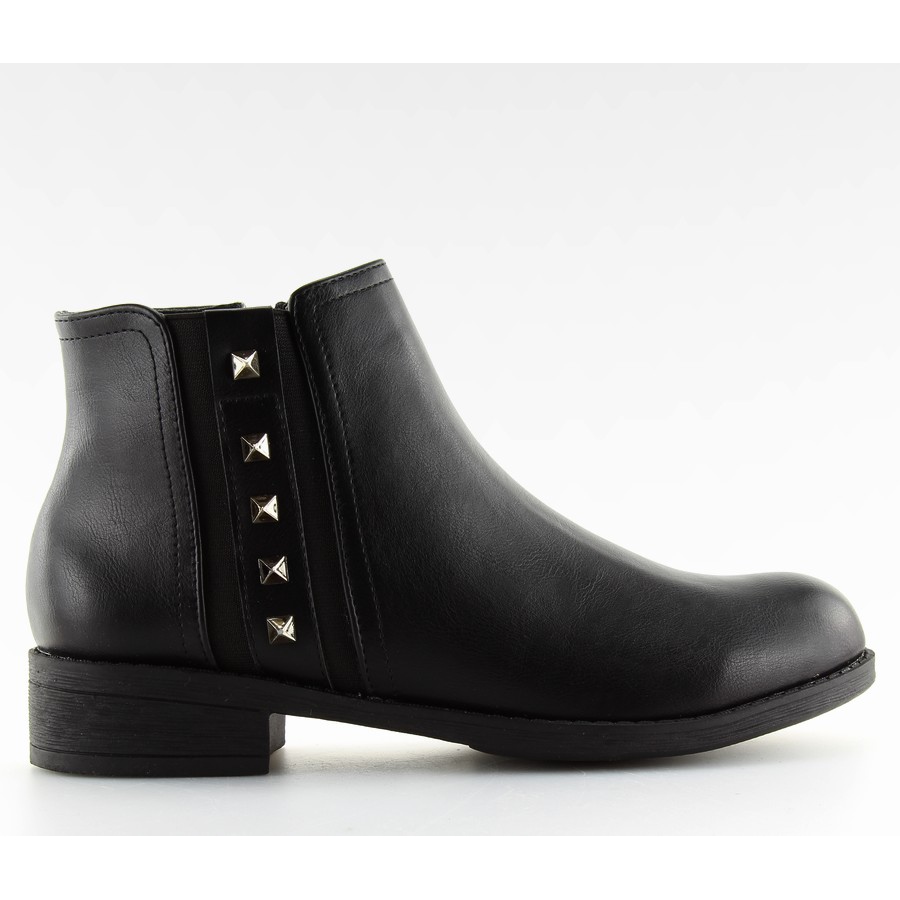 Ovandeln dekorerad med iögonfallande dubbar framhäver deras unika karaktär, och snygga inlägg av stretchigt gummi ger dem inte bara ett unikt utseende, utan säkerställer också en perfekt passform till benet. Tack vare dragkedjan på insidan blir det extremt enkelt och bekvämt att ta av och på skorna.