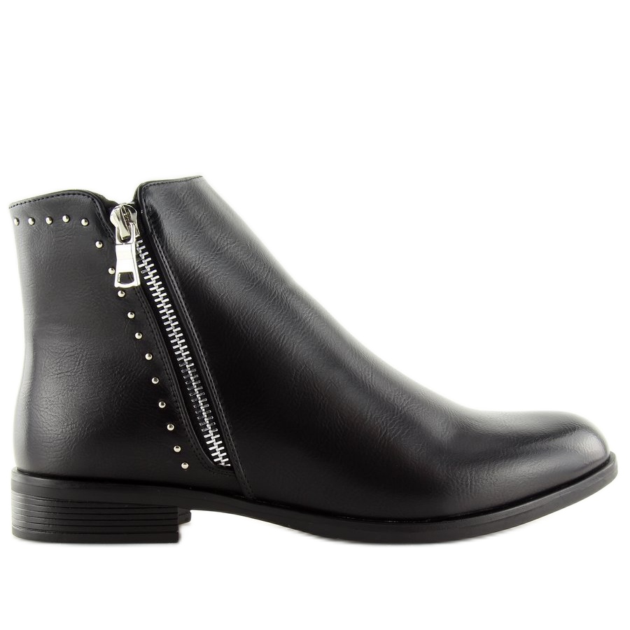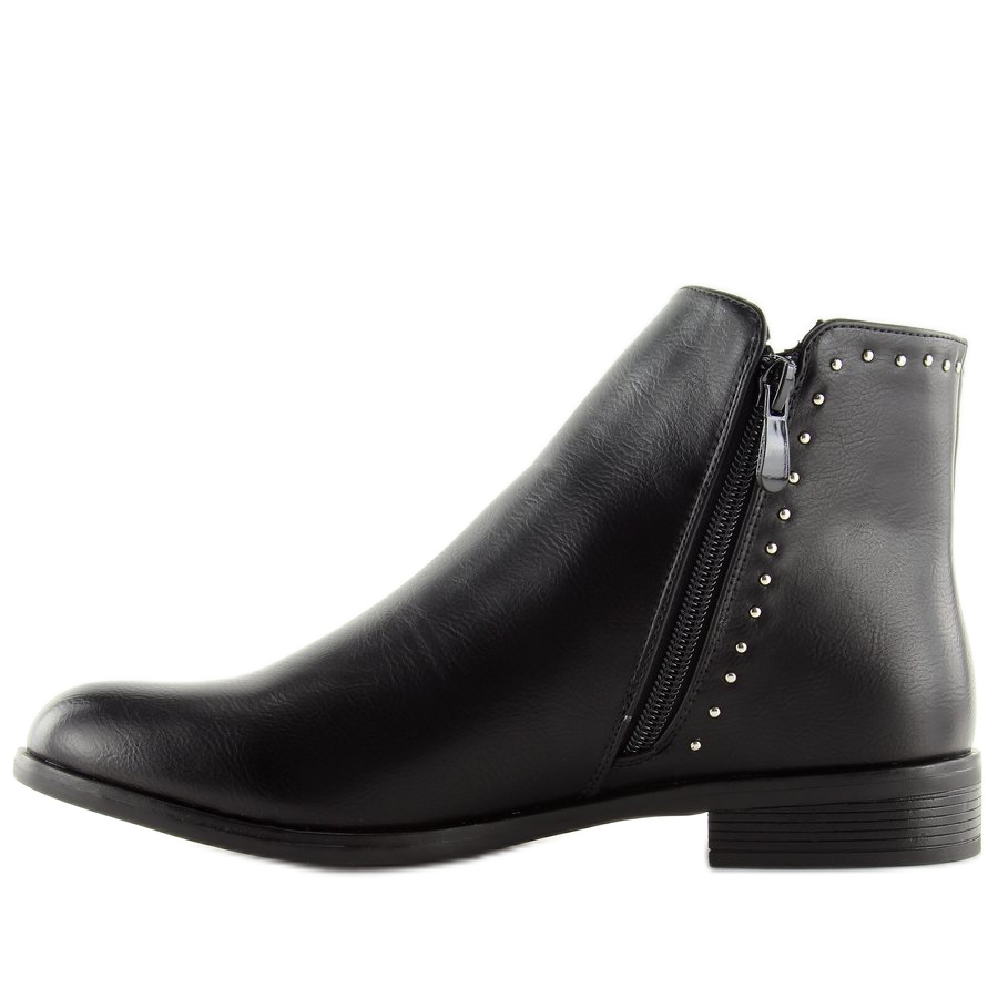 Svarta Chelsea-stövlar för kvinnor 0-257 Svart är en unik modell som kombinerar en klassisk design med moderna inslag. Dessa eleganta stövlar är gjorda av ekologiskt läder och är perfekta för vardagsbruk och speciella tillfällen. Deras ovandel dekorerad med en silverdragkedja och iögonfallande nitar ger dem en unik karaktär som väcker uppmärksamhet och lägger till stil till varje styling.