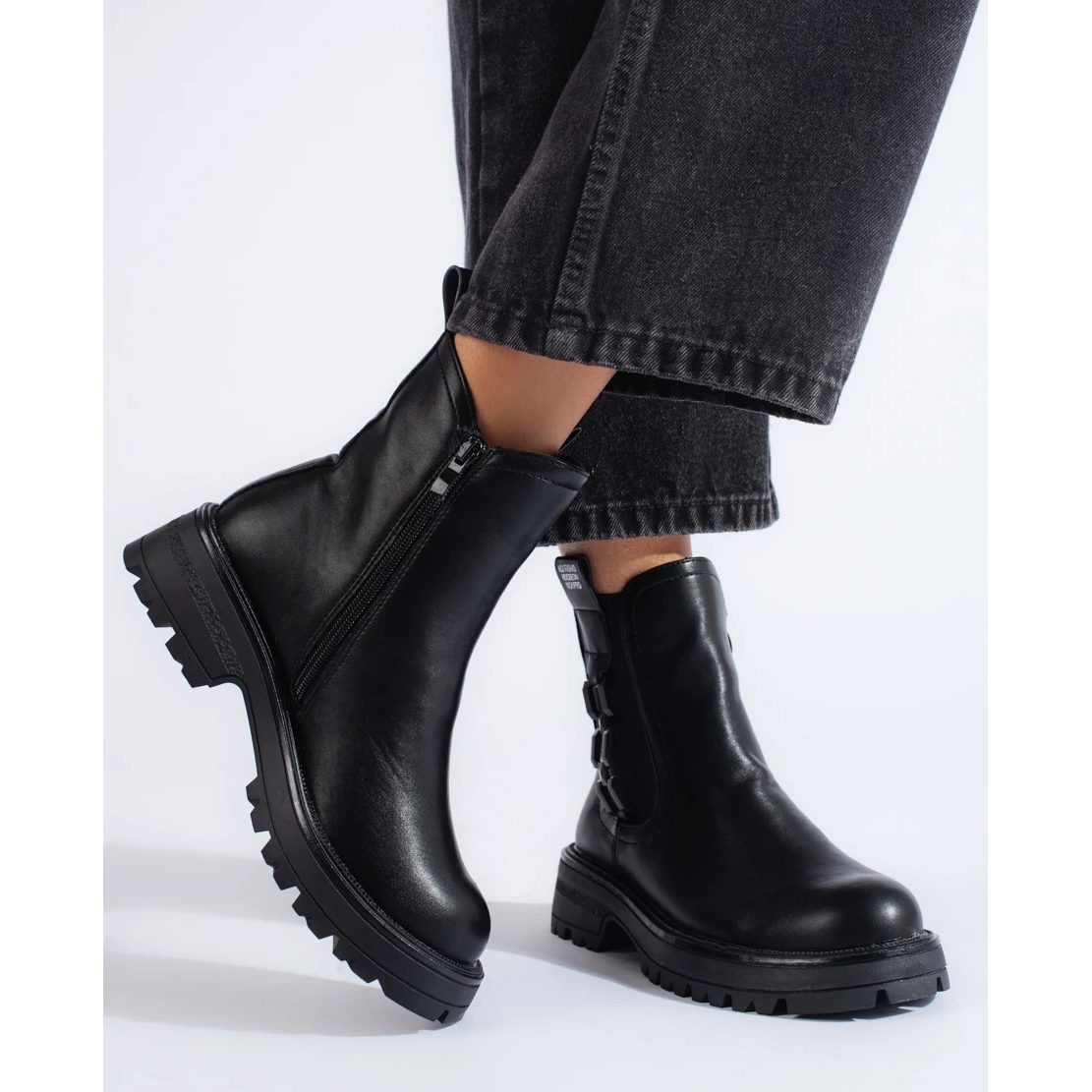 Black Women's Chelsea stövlar på en svart sula - en klassiker i en modern upplaga. Universal, isolerad, perfekt för höst och vinter; De kombinerar en avslappnad karaktär med en mode accent, de kommer att arbeta både dagligen och för en kväll ute.