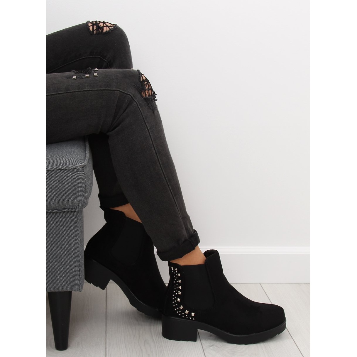 Detaljer: Svarta Chelsea -stövlar med dubbar Z175 Svart
