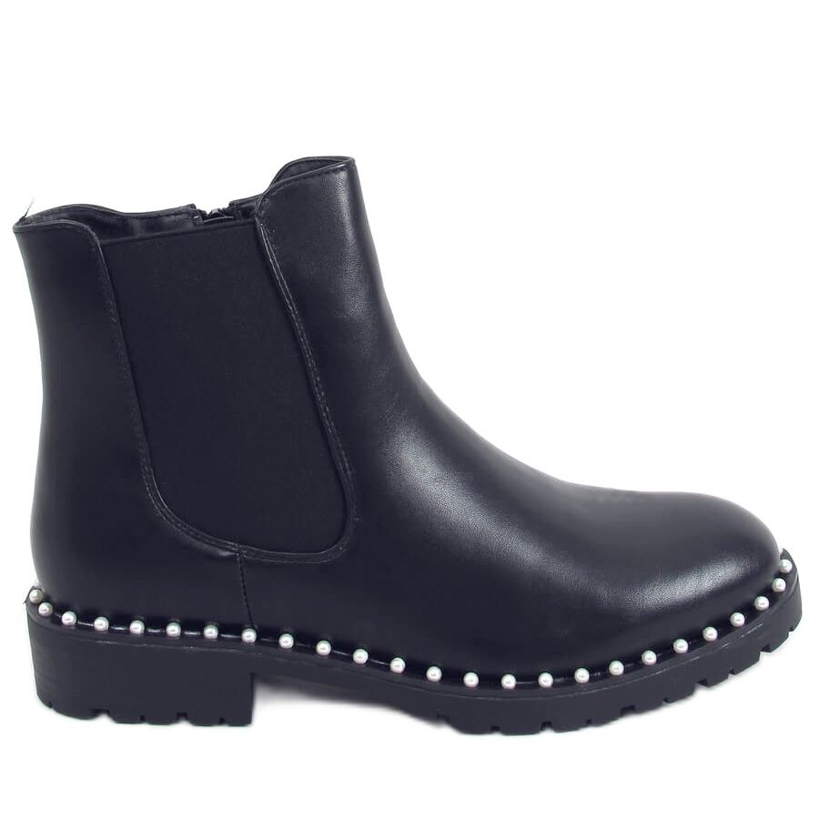 Detaljer: Svarta Chelsea stövlar med pärlor HQ247 Svart