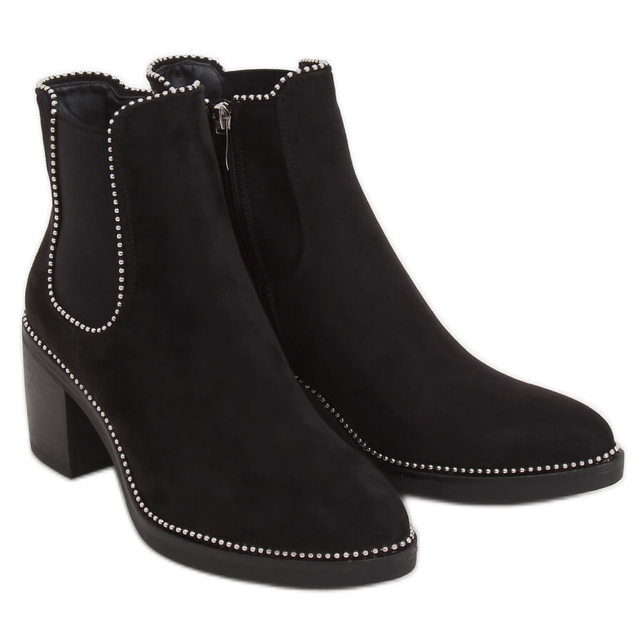 Upptäck elegansen och komforten som erbjuds av svarta Chelsea-stövlar 15672 Black. Dessa stövlar i mocka för kvinnor kännetecknas inte bara av sin stilfulla skärning, utan också av en bred 7 cm hög klack, som lägger till feminin charm och framhäver figuren. Subtila silverkulor runt gummiinläggen och sulor ger dem en unik karaktär, vilket gör dem säker på att dra till sig uppmärksamhet.