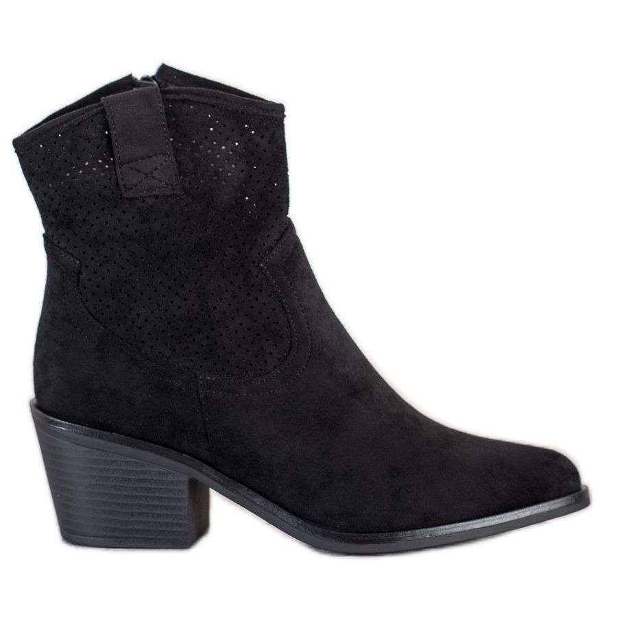 Filippo Black Cowboy Boots designades för kvinnor som värdesätter ett modernt utseende. Den övre bredden på 28 cm och ankelhöjden (14-15 cm) gör att dessa skor ser eleganta ut på foten. Den runda tån ger subtilitet, och den släta sulan av syntetiskt material säkerställer tillräckligt grepp.