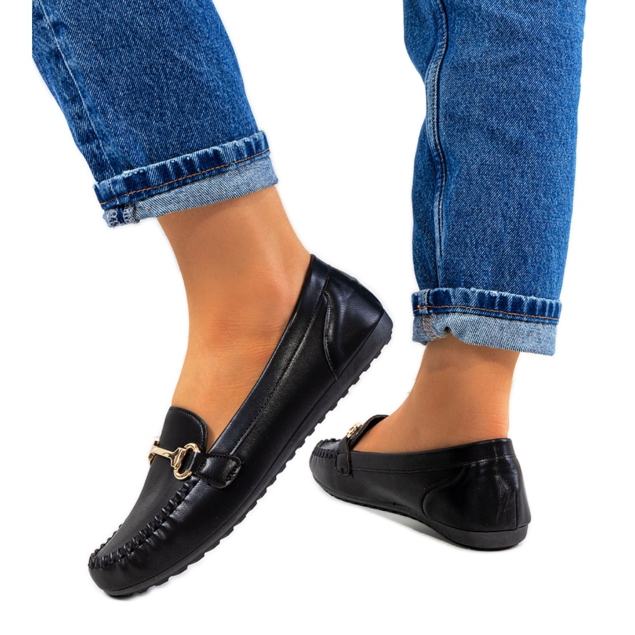 Svarta Ilana-mockasiner för kvinnor är ett elegant förslag som perfekt kommer att komplettera alla stylingar, både på jobbet och under mindre formella tillfällen. Dessa skor är gjorda av högkvalitativt ekoläder och har ett mjukt ovanmaterial som subtilt kramar om foten för komfort hela dagen.