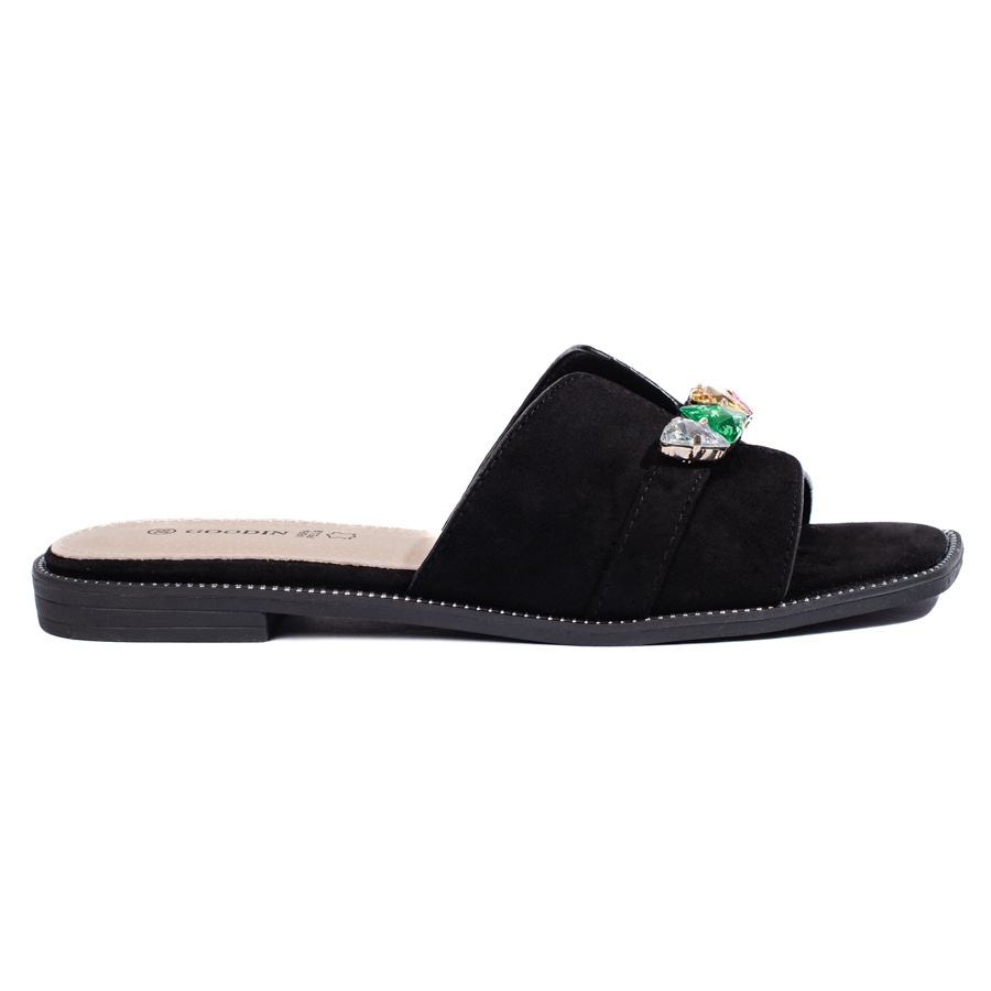 Slippare finns i en elegant svart färg, vilket gör dem till ett universellt element i garderoben, som matchar olika kläder - från lösa byxor till sommarklänningar. Höjden på plattformen på 2 cm gör klaffarna tillräckligt bekväma att bära under dagen.