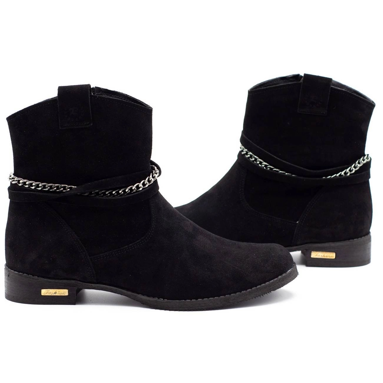 Den dekorativa kedjan lägger karaktär till stövlarna, vilket gör dem inte bara till ett praktiskt element av kläder, utan också ett fashionabelt tillskott till all stilisering. Rundtå och ankelhöjd ger ytterligare stöd och stabilitet.