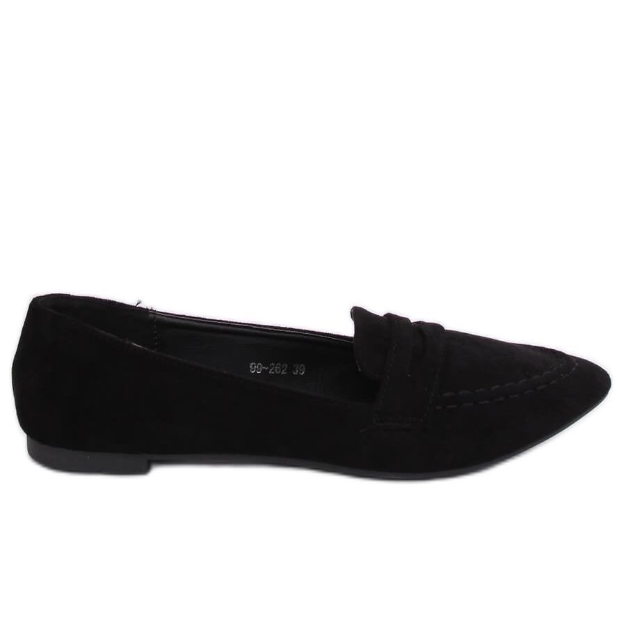 Upptäck elegansen och komforten som erbjuds av kvinnors svarta mockasiner 99-262 Svart. Dessa snygga skor med en delikat spetsig tå är en perfekt kombination av klassiskt och modernt, perfekta att bära i alla situationer - både vardagliga och mer formella tillfällen.