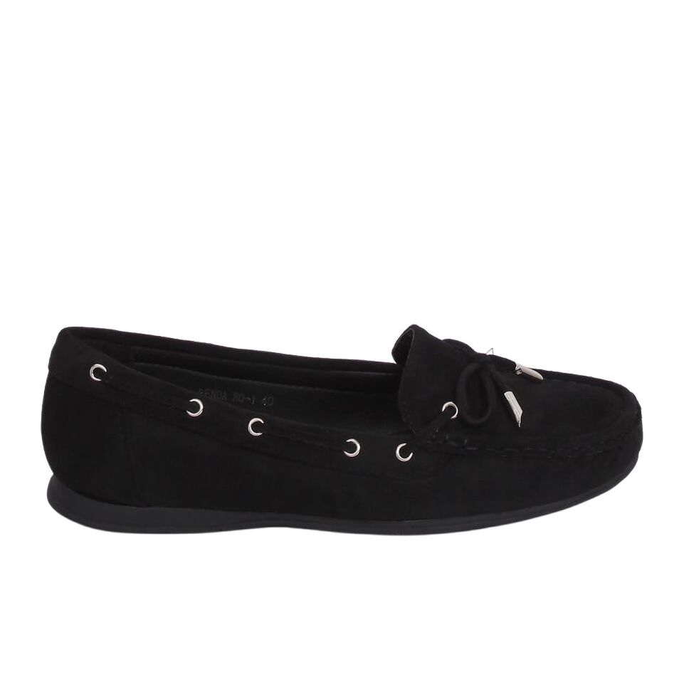 RQ-1 Svarta kvinnors svarta mockasiner är det perfekta valet för varje kvinna som värdesätter stil och komfort. Tillverkade av ekologisk mocka, kommer dessa eleganta skor i en djup svart färg att passa perfekt in i varje vardagsstyling. En subtil rosett och känsliga sömmar ger dem en moderiktig karaktär, vilket gör att de sticker ut från andra modeller.