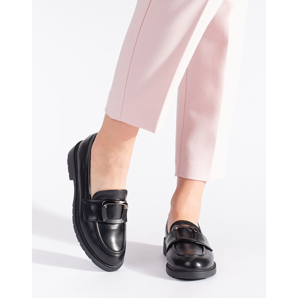 Svarta loafers kännetecknas av en snygg detalj i form av en kedja, vilket ger dem en speciell stil och betonar deras avslappnade och samtidigt klassiska design. Tack vare deras universella färger kommer de att matcha många stilar - både med byxor och klänningar.