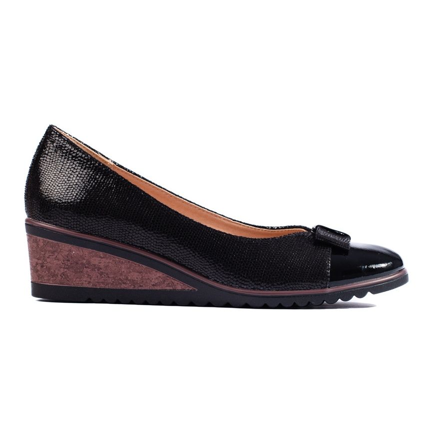W. Potocki -pumpar är en kombination av klassisk elegans och komfort - den låga kilen säkerställer stabilitet, och den lackerade finishen och subtila djurmönstret lägger till karaktär. Ett utmärkt val för människor som letar efter universella, snygga skor för olika tillfällen.
