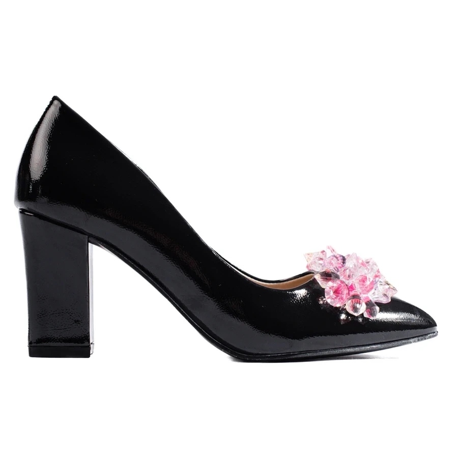 Svarta kvinnors pumpar med dekorationer - elegans och stil för varje tillfälle