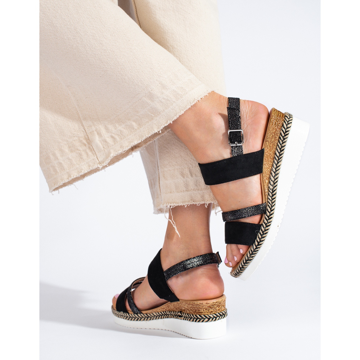 Detaljer: SHELOVET Svarta damsandaler med kil