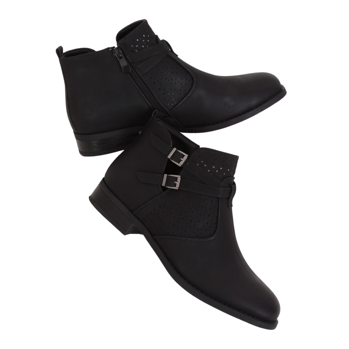 Skorna finns i en klassisk svart färg, vilket gör dem lätta att matcha till vilken outfit som helst. Ytterligare element, som genombrutna utskärningar och strass, ger skorna ett modernt utseende.