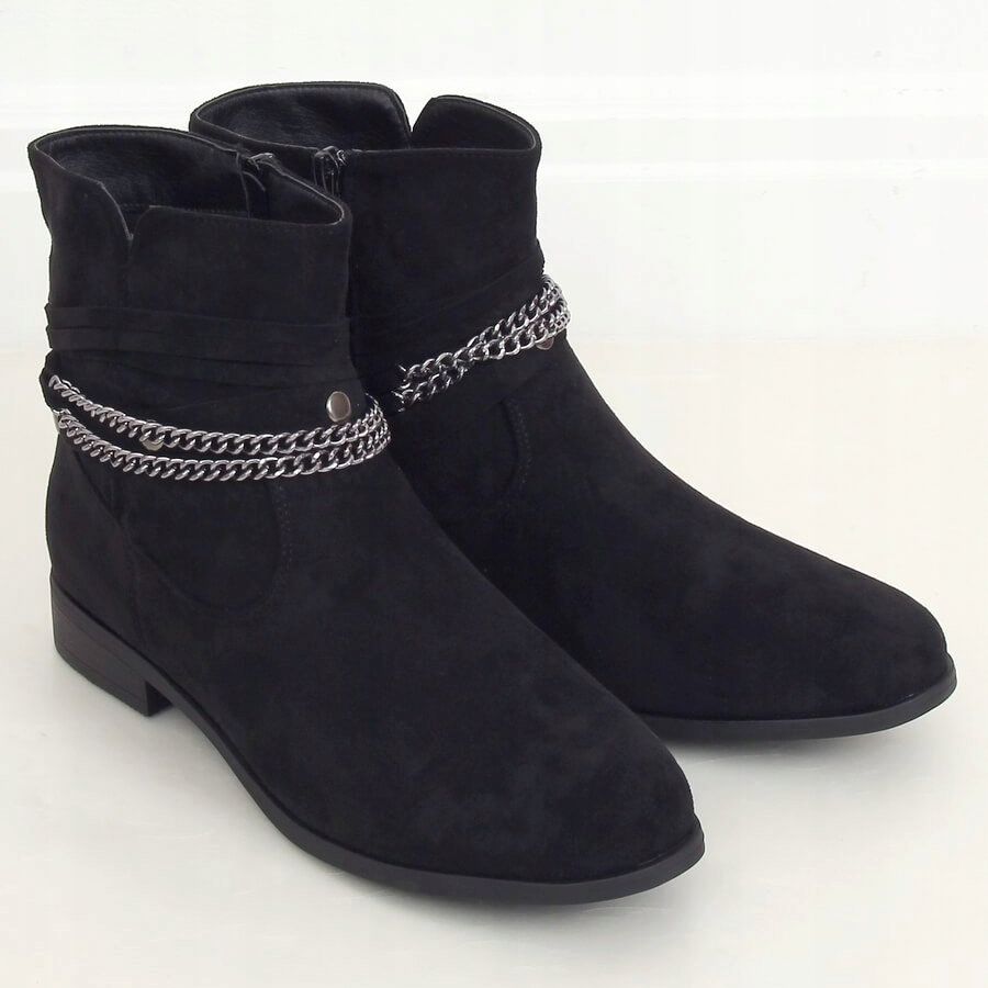 Upptäck elegans och komfort med damstövlar i svart mocka 688-201 Svart. Dessa unika platta skor njuter av en moderiktig design som passar perfekt in i vardagens styling. Den välformade ovandelen som sveper runt ankeln är dekorerad med subtila ränder och kedjor, vilket ger dem en unik karaktär.