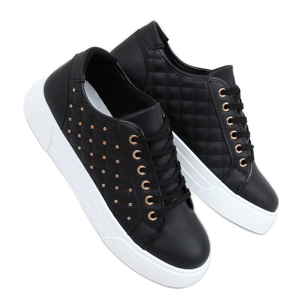 Upptäck en unik stil med LA124P Svarta damsneakers med dubb. Dessa svarta sneakers med höga sulor är det perfekta valet för alla som värdesätter originalitet och modeinnovationer. Deras quiltade mönster och iögonfallande nitar drar till sig uppmärksamhet, vilket gör dem till en oskiljaktig del av din vardagliga styling.