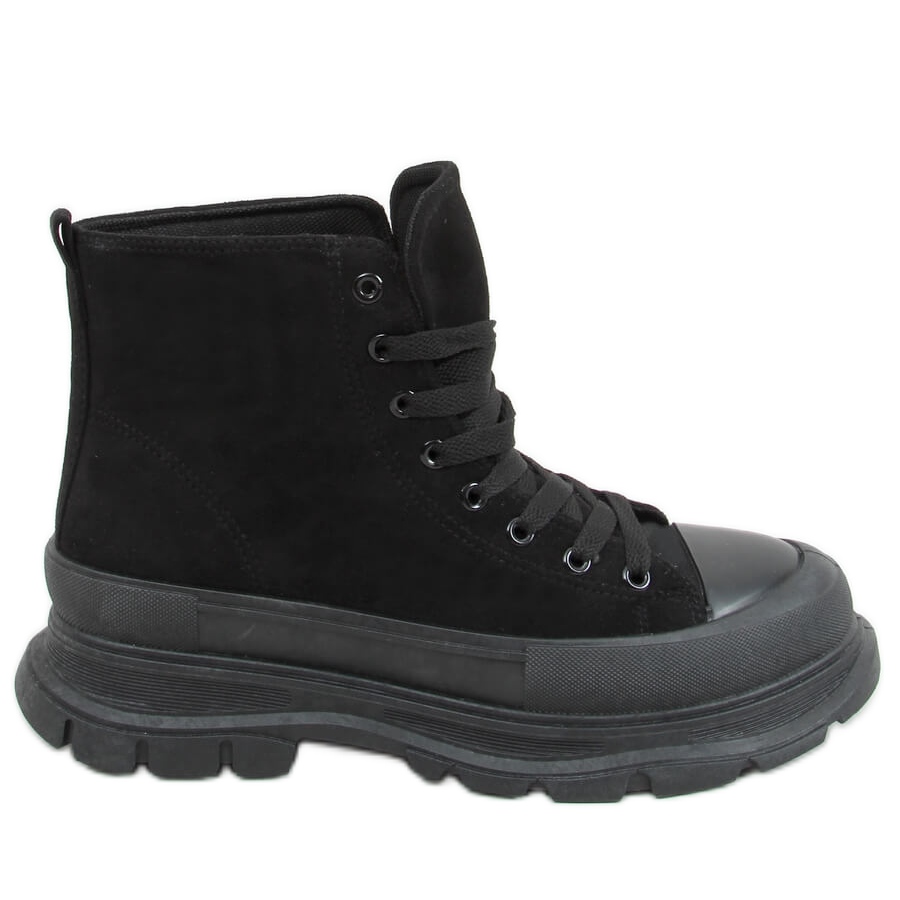 Upptäck elegans och komfort med högtoppade sneakers för kvinnor 85-730 Black! Dessa snygga sneakers med snörning kombinerar modern design med ett tidlöst snitt som är perfekt för vardagsstyling. Den höga sulan på 5,5 cm tillför lätthet till siluetten och säkerställer bärkomfort hela dagen.