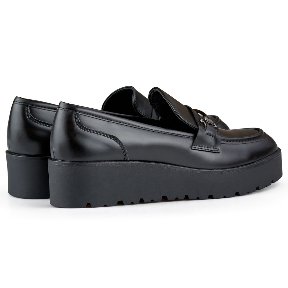 Detaljer: Svarta damskor med låg kil, damskor med plattform, svarta