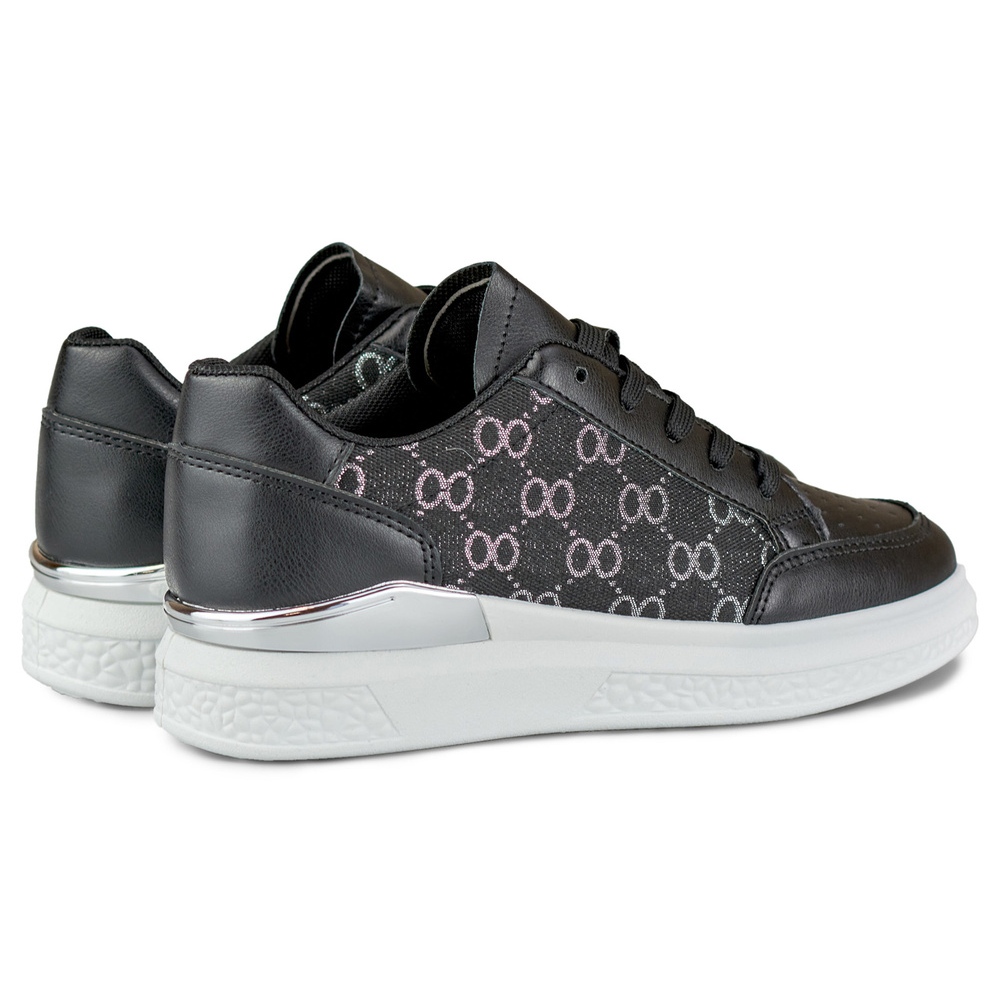 Svarta kvinnors sneakers med ett fashionabelt geometriskt mönster - komfort och stil varje dag