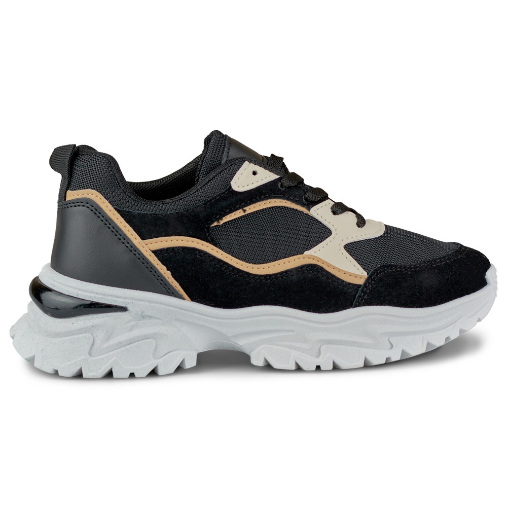 - Fashionable Look: En svart övre kombinerad med en vit sula är en tidlös duo som matchar många stilar.