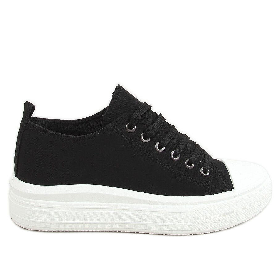Dessa sneakers är gjorda av högkvalitativt tyg, både externt och inre, och är inte bara estetiska utan också mycket bekväma. En rund tå och en platt 4 cm hög sula gör att gå i dem till ett sant nöje. Den släta ytan i en klassisk svart färg passar perfekt till en mängd olika stilar, vilket gör dem till ett bra komplement till varje garderob.
