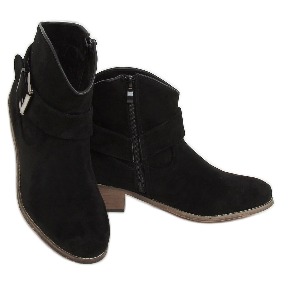 Upptäck unika svarta damstövlar E2251 Black II Genre, som kombinerar cowboystil med en modern accent, kommer att ge karaktär till varje styling. Dessa eleganta stövlar, gjorda av ekologisk mocka av hög kvalitet, väcker uppmärksamhet med sitt iögonfallande spänne och klassiska svarta färg.