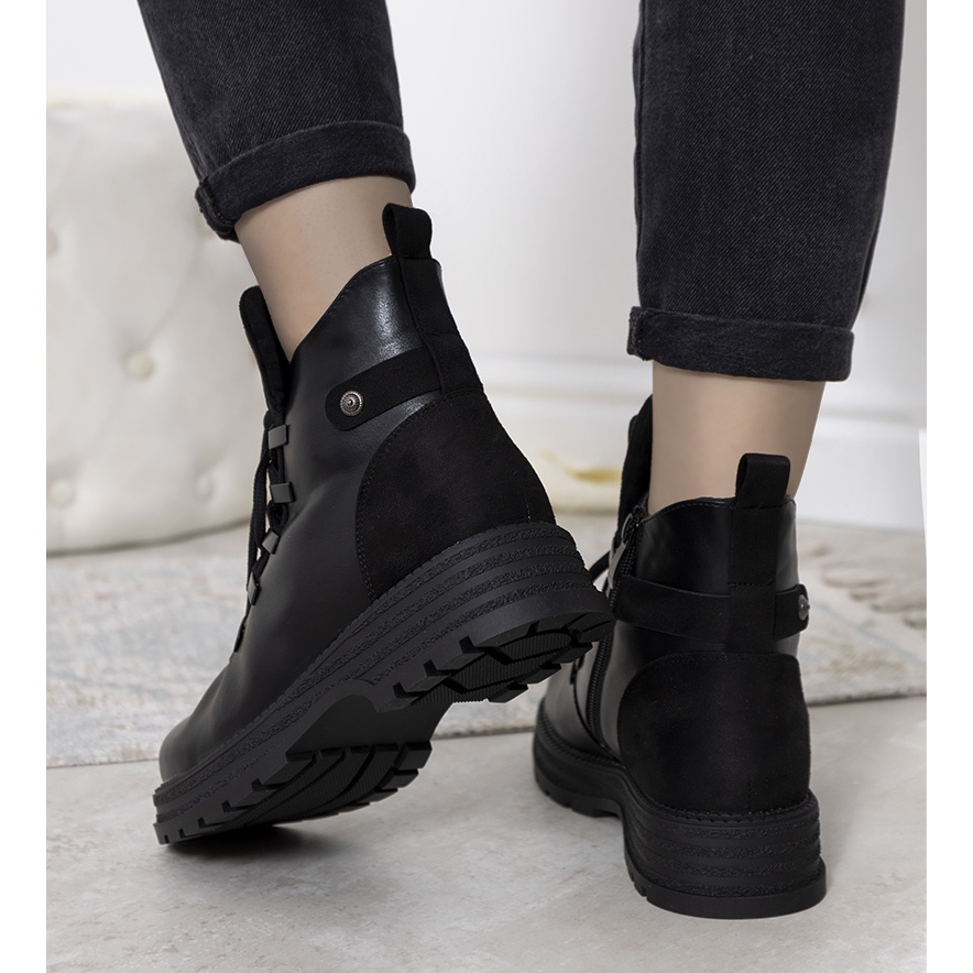 Svarta damisolerade Ringer-stövlar är det perfekta valet för varje kvinna som vill kombinera moderiktig design med komfort. Dessa snygga skor kännetecknas av uppmärksamhet på detaljer, och erbjuder en ovandel gjord av högkvalitativt ekologiskt läder och eleganta eko-läderinlägg. Tack vare den höga sulan är Ringer-stövlar ett absolut måste den här säsongen, perfekt matchande aktuella trender.