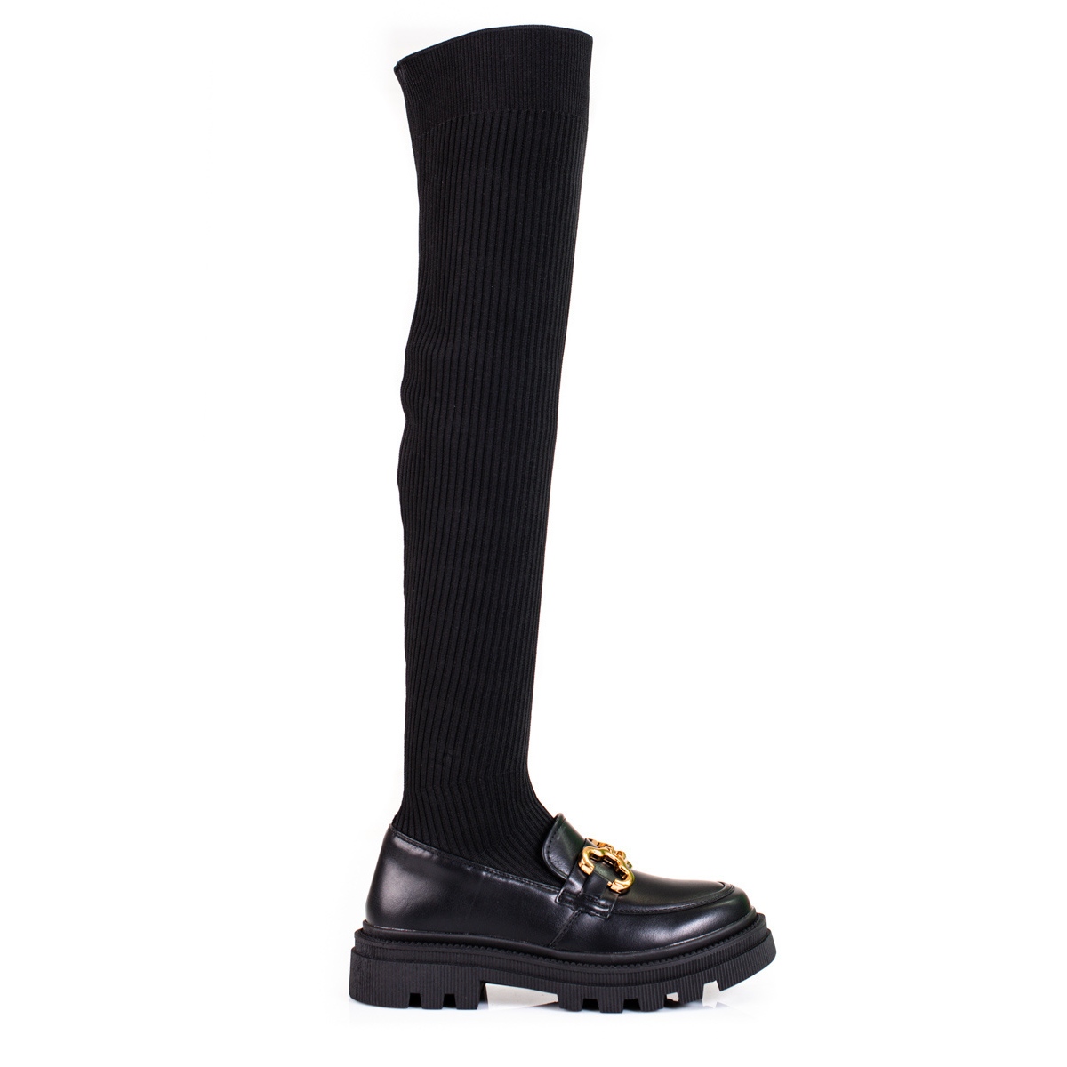 Svarta kvinnors stövlar med en elastisk övre del - elegans för kvällen och festen