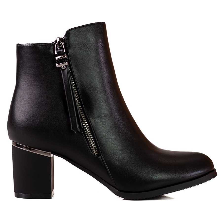 Detaljer: Svarta damstövlar med låg klack Shelovet med dekorativ dragkedja