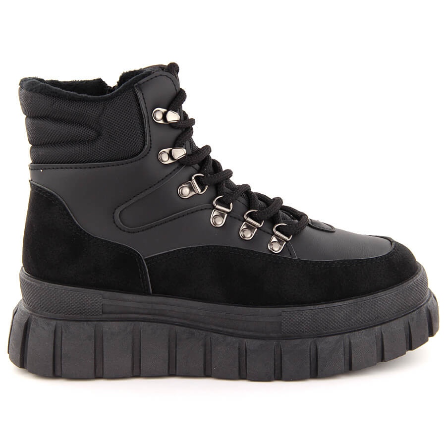 Trapparna har utformats för komfort - de har en blixtlås och snört bindning, så att de lätt kan anpassas till foten. Den universella svarta färgen utan mönster gör att dessa stövlar matchar varje garderob.