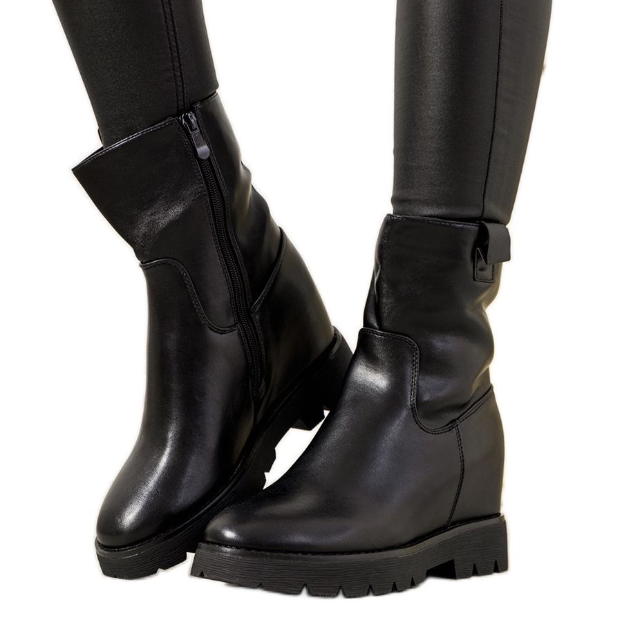 Detaljer: Svarta damstövlar på New Goldies kilklack