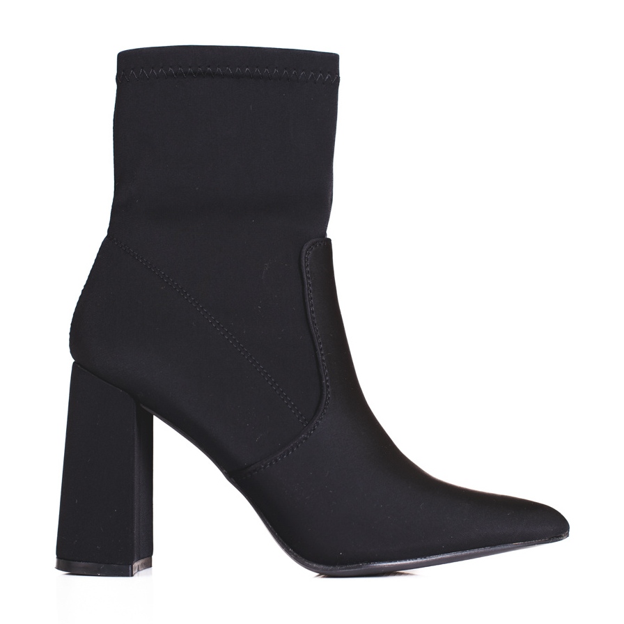 Tillverkade av högkvalitativt textilmaterial garanterar Shelovet-stövlarna perfekt passform och bärkomfort. Den täckta 9,5 cm höga hälen förlänger figuren optiskt, och den uppbyggda, förstyvade hälen framhäver dessutom stabilitet och elegans. Den runda tån och den släta plastsulan gör dessa skor du gärna kan bära från dagar på kontoret till kvällsfester.