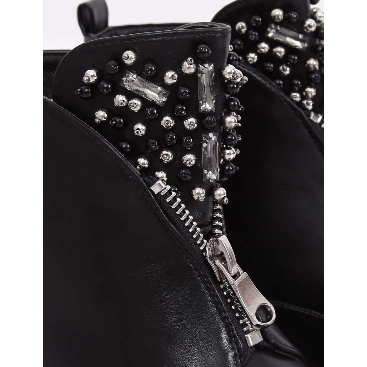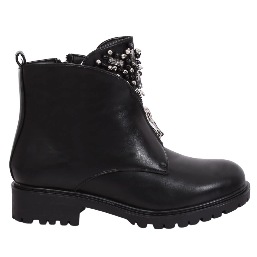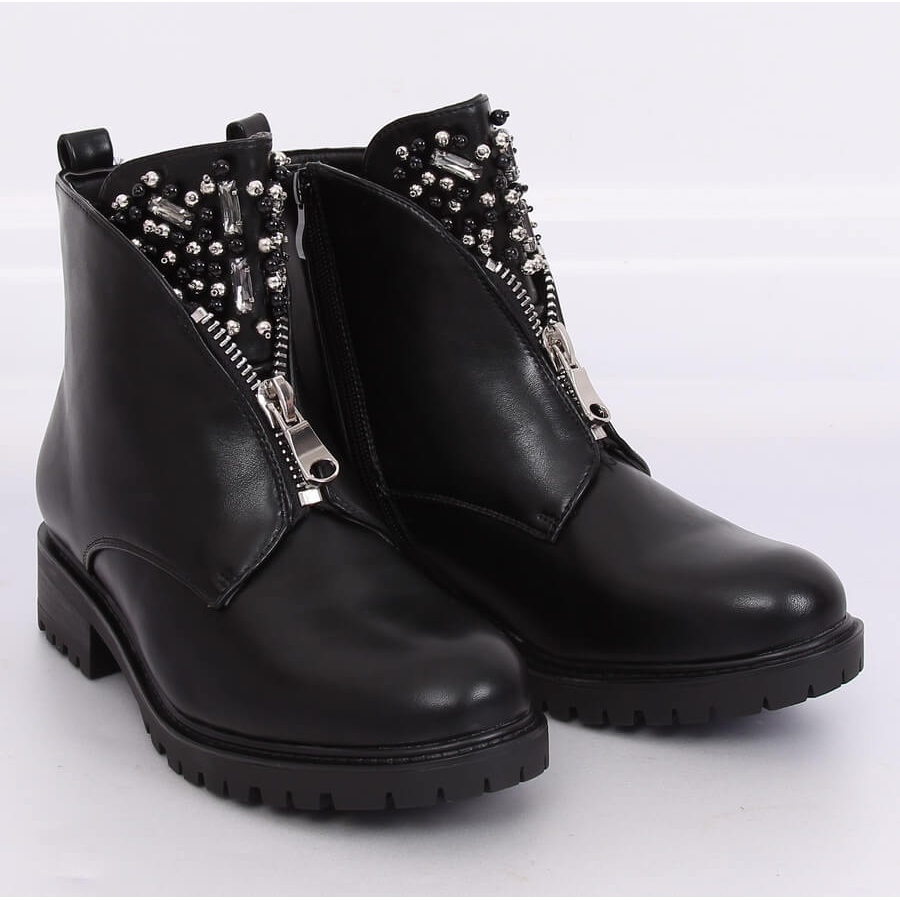 Upptäck de unika BK-37 svarta ankelstövlarna för kvinnor, som säkert kommer att locka uppmärksamheten från älskare av mode och rockstil! Dessa eleganta och extravaganta stövlar är gjorda av högkvalitativt ekologiskt läder, vilket gör dem både snygga och miljövänliga. Deras unika design är berikad med en imponerande dekorerad plös och en silverdragkedja på framsidan, vilket ger karaktär och gör att de sticker ut från andra modeller.