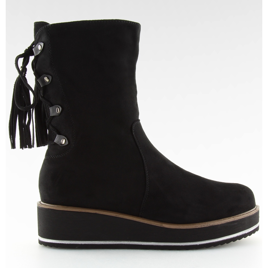 Upptäck elegans och komfort i ett tack vare TH17-7 ankelboots för kvinnor i svart. Dessa snygga high-top skor är det perfekta valet för dagligt bruk, och kombinerar moderiktig design med funktionalitet. Deras unika charm ligger i den dekorativa snörningen på baksidan, som är avslutad med fransar, vilket ger helheten en unik karaktär.