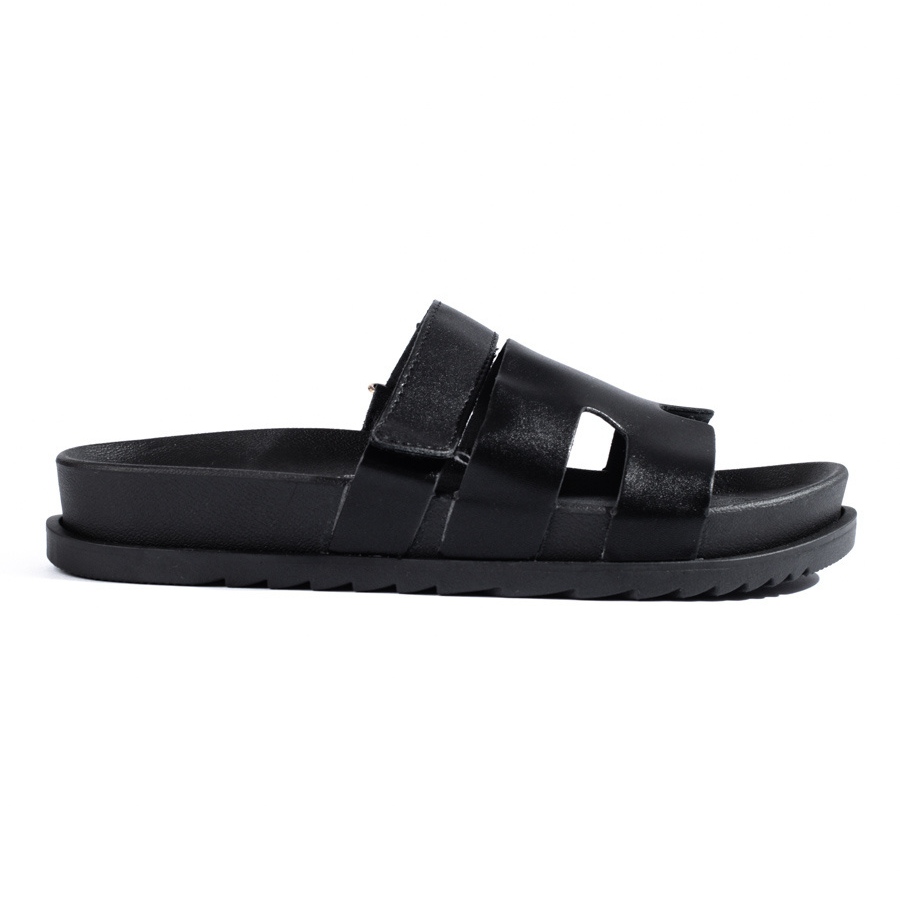 De designades för kvinnor som inte är rädda för att betona sin individuella stil och samtidigt förväntar sig komfort från skor. Tack vare avsaknaden av en traditionell klack och en mjuk slip-on stängning är dessa flip-flops extremt lätta att ta på och bära. Den öppna hälen ger dina fötter frihet under varma dagar, och den rejäla plastsulan med slitbana garanterar stabilitet och grepp på olika underlag.