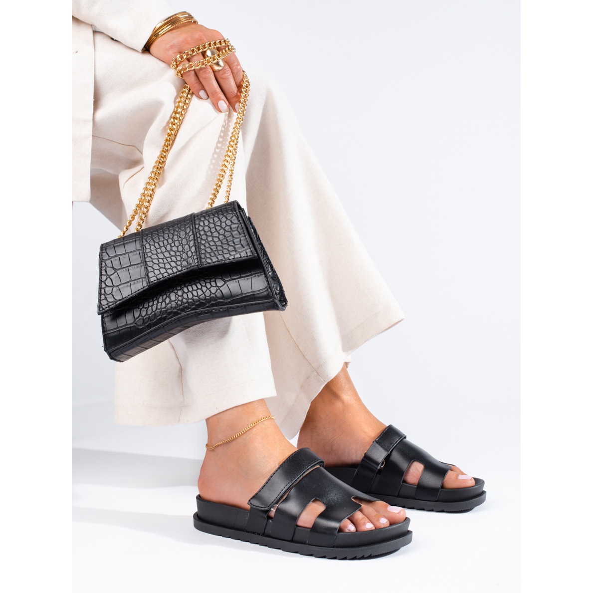 SHELOVET Svarta damtofflor på en tjock Shelovet-plattform