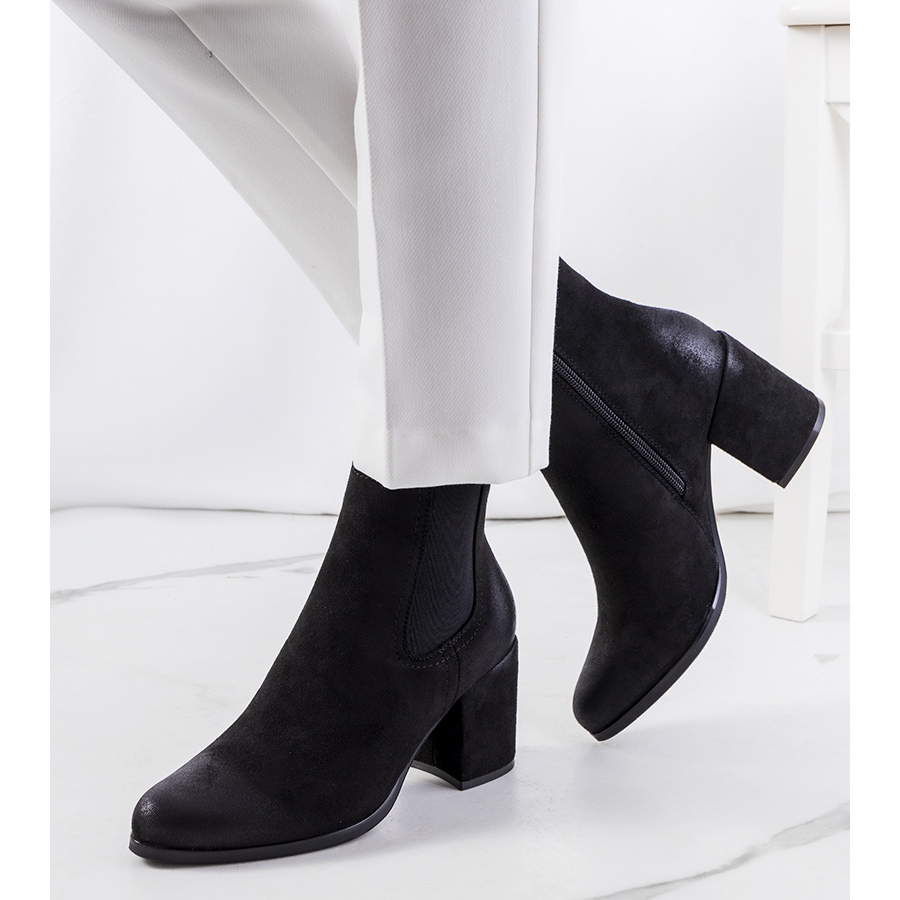 Klassiska, feminina stövlar gjorda av ekologiskt läder med mockstruktur. Fäst med en dragkedja från insidan, inbäddad på en stabil, medelstora stolpe (hälhöjd: 7 cm). Lite isolerad inuti, perfekt för svalare dagar. Standardnummerering - Välj din vanliga storlek.