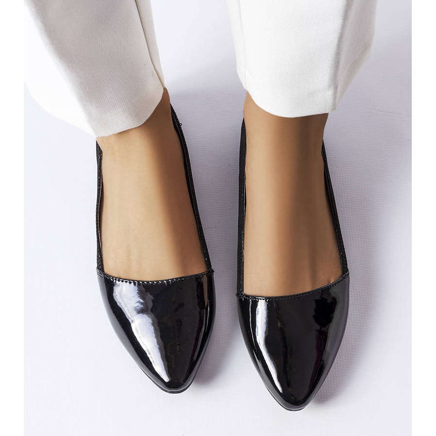 Vi presenterar svarta eleganta Riel-balettlägenheter, som perfekt kombinerar komfort med moderiktig stil. Dessa slip-on skor, satta på en platt sula, är det perfekta valet för varje kvinna som uppskattar klassisk stil och universalitet. Den låga ovandelen med en spetsig tå ger elegans, vilket gör dem till ett perfekt komplement till både vardagliga och formella stilar.